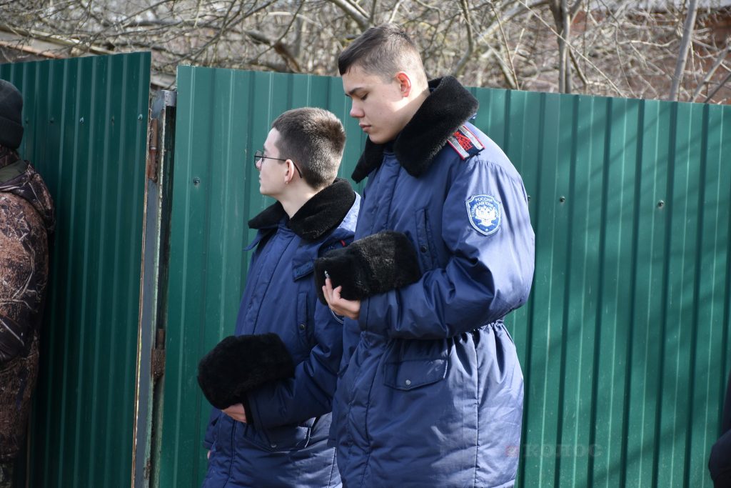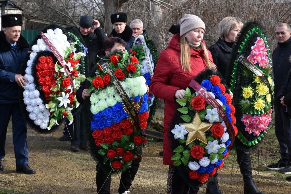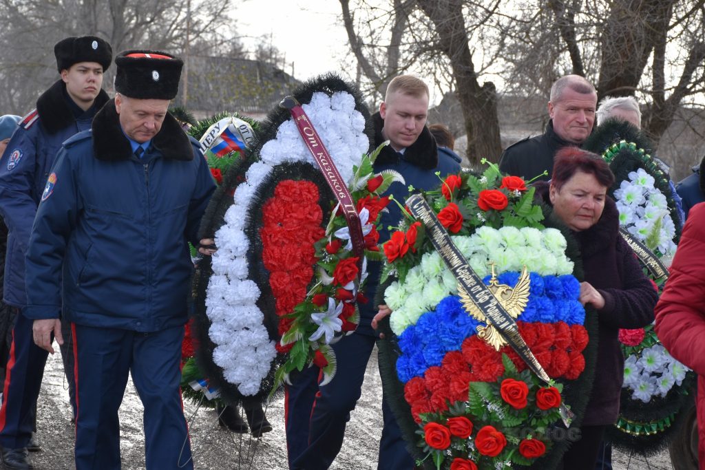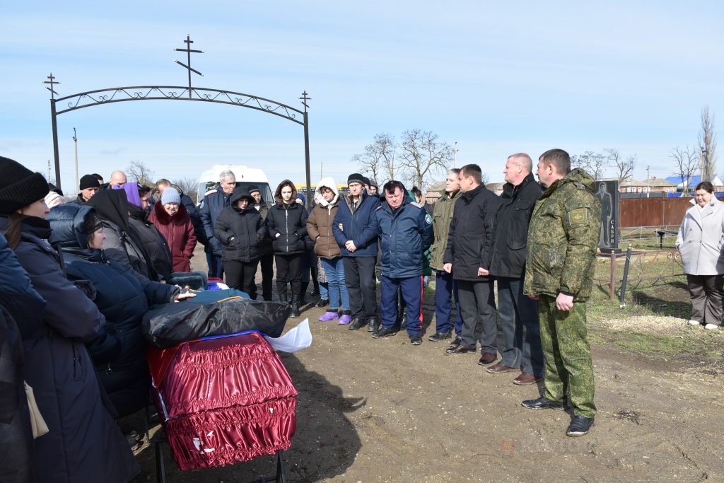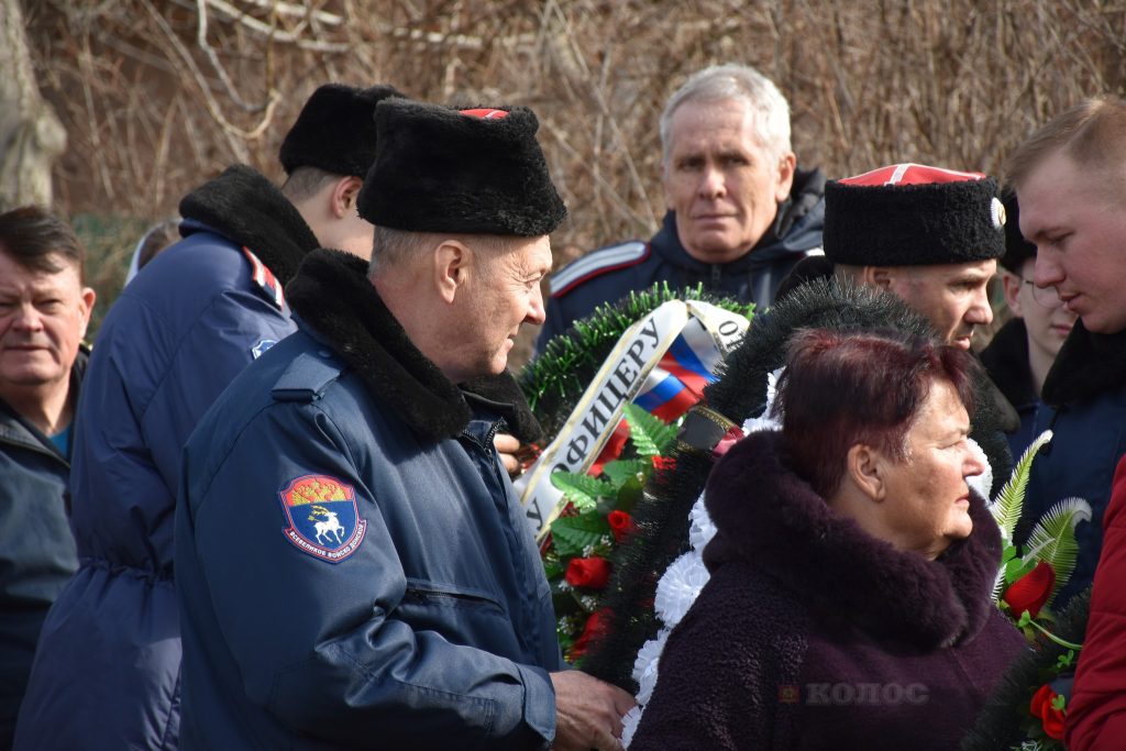 Проститься с офицером пришли жители райцентра, друзья, соседи, представители казачества района, кадеты и наставники Новочеркасского казачьего корпуса. Среди официальных лиц — представитель военного комиссариата С. Хатько, замглавы района по вопросам безопасности Э. Ткаля, глава администрации Песчанокопского поселения А. Острогорский.