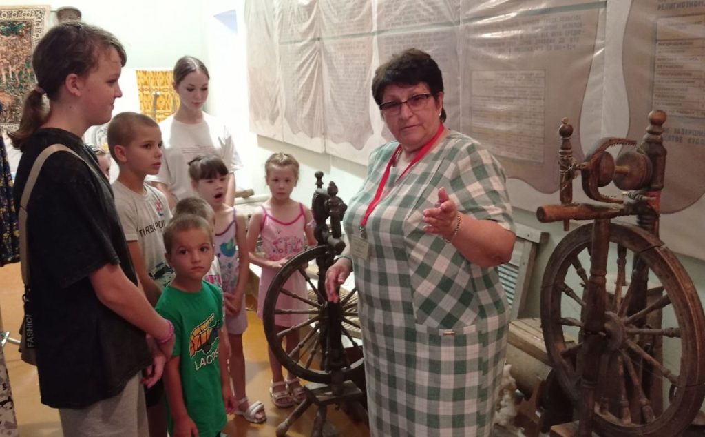 Экскурсовод Ольга Алексеевна Овчинникова познакомила детей с залом старинного быта, где они увидели предметы домашней утвари, мебель и традиционные костюмы прошлых веков, узнав много интересного о жизни своих предков.