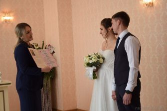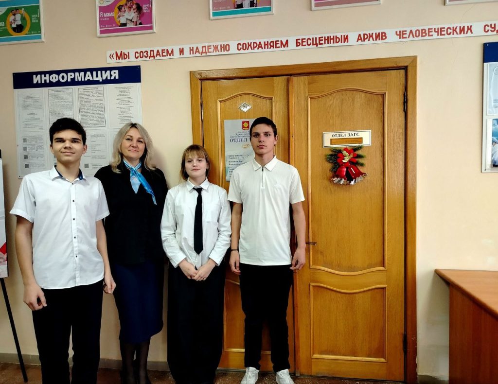 Они посетили отдел ЗАГС, где своими глазами увидели, как хранят семейную историю, сравнили архивные записи чернилами с современными документами и получили на память главный символ семейного счастья — каравай.