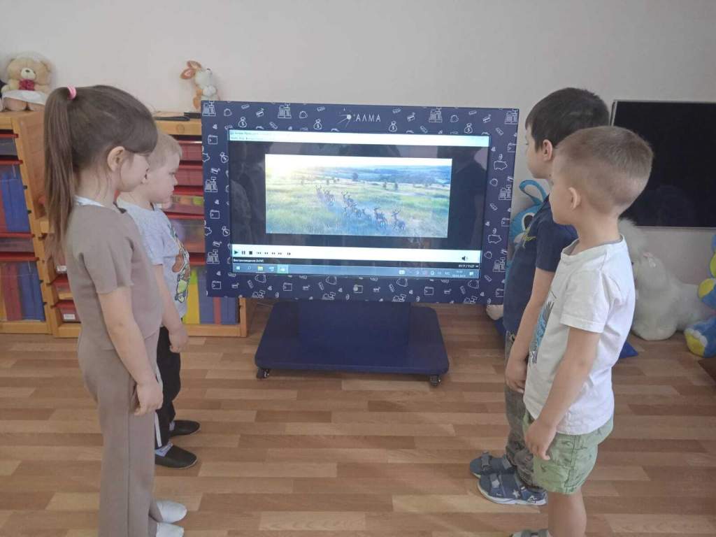 Дети средней группы просмотрели презентацию, посвященную обитателям дикой природы, и обсудили с педагогами вопросы сохранения биоразнообразия. Воспитанники старшей группы ознакомились с видеоматериалом «Природа Ростовской области» и поделились своими мыслями о роли человека в защите диких животных.