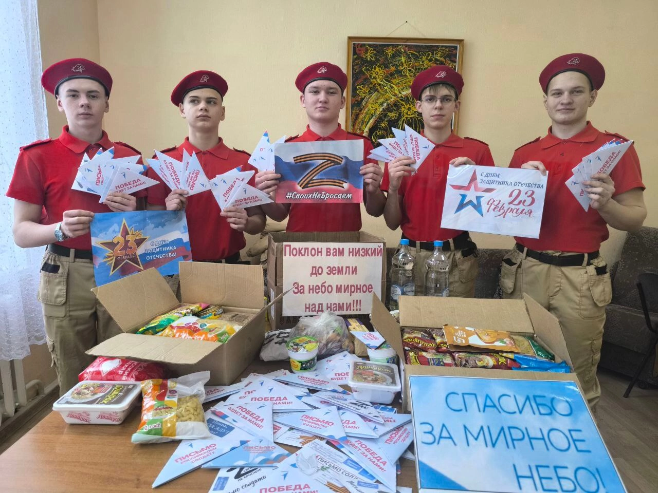 В преддверии Дня защитника Отечества юнармейский отряд «Наследие» под руководством своего командира Никиты Дорофеева, совместно с активистами Движения Первых РСОШ №9, провел значимую акцию #МывместесЗащитниками, с целью поддержки участников специальной военной операции.