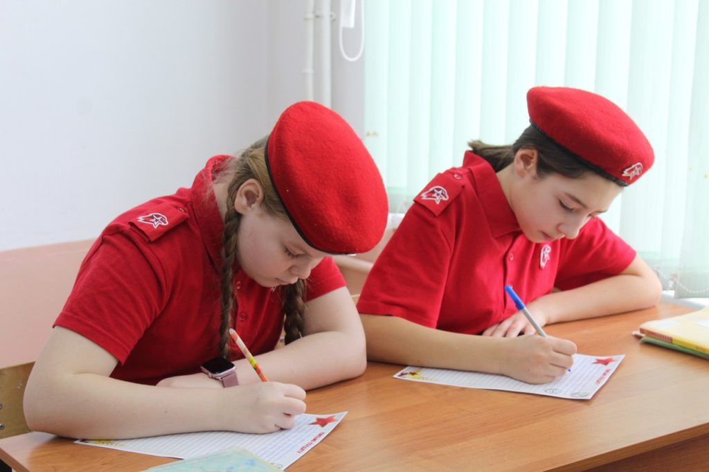 Воспитанники ВВПОД «Юнармия» Ростовской области присоединились к всероссийской акции «Письмо солдату», написав письма поддержки военнослужащим Южного военного округа, выполняющим задачи в зоне СВО.