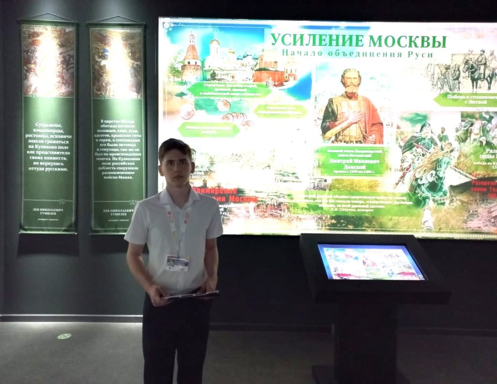 В финале Станислав представил авторскую экскурсию «Правление Дмитрия Донского», которая покорила жюри глубиной проработки темы и артистизмом подачи. За первое место он получил диплом и ценные призы: планшет, powerbank и фирменный ежедневник.