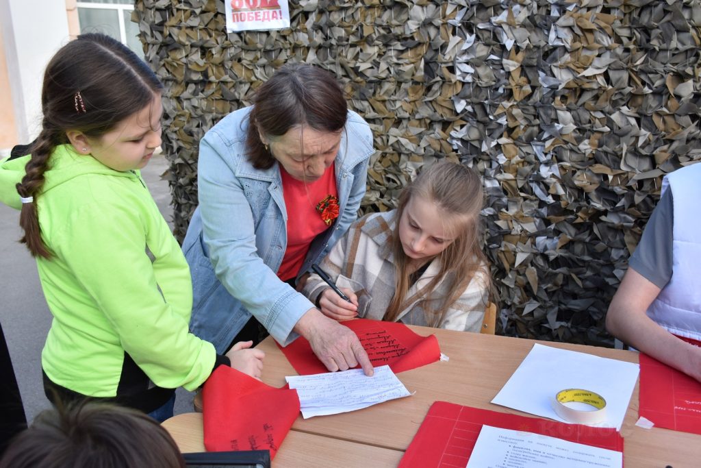 После того как все отрезки будут сшиты в одно Полотно, его развернут в РДК «Юбилейный» на районных мероприятиях в честь 80-летия Великой Победы.